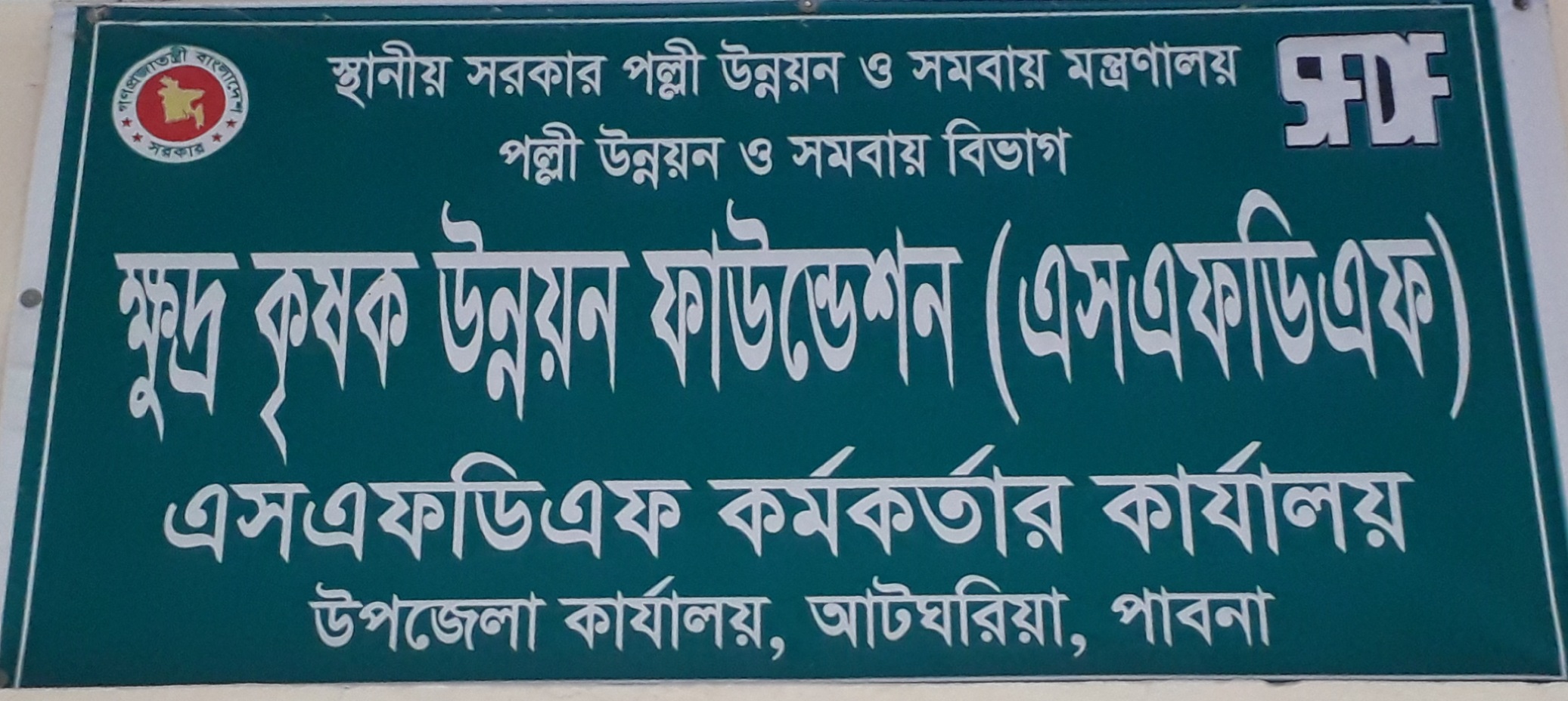 বিঃদ্রঃ আটঘরিয়া উপজেলা গেইটে নেমে উপজেলার ভিতরে ঢুকলেই আমাদের ক্ষুদ্র কৃষক উন্নয়ন ফাউন্ডেশন(এসএফডিএফ) এর সংযুক্ত সুদৃশ্য ব্যানার টি দেখতে পাবেন যেটি, উপজেলা পরিষদ কমপ্লেক্স জামে মসজিদের পূর্ব পার্শ্বের ভবনে অবস্থিত।